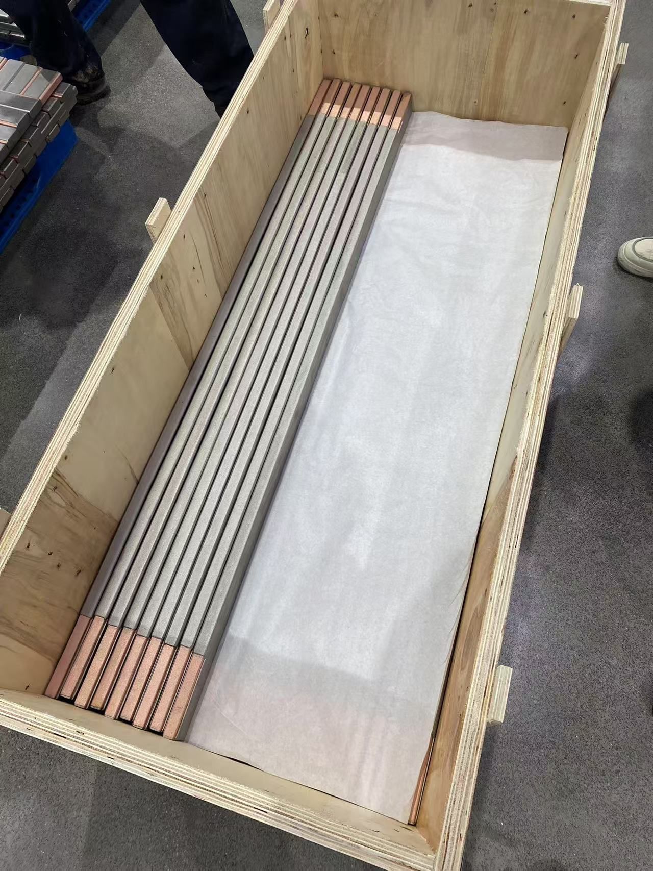 Titanium clad copper bar. Combining excellent conductivity of copper and high corrosion-resistance of titanium: